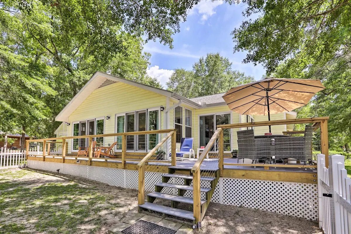 Enjoy your own little slice of waterfront life at this vacation rental in Oak Island! Bring your kayaks and glide along the water from the private dock, pack a picnic lunch, take a short 700-foot walk to the oceanfront,